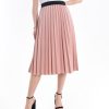 Fusta plisata midi cu elastic negru, roz