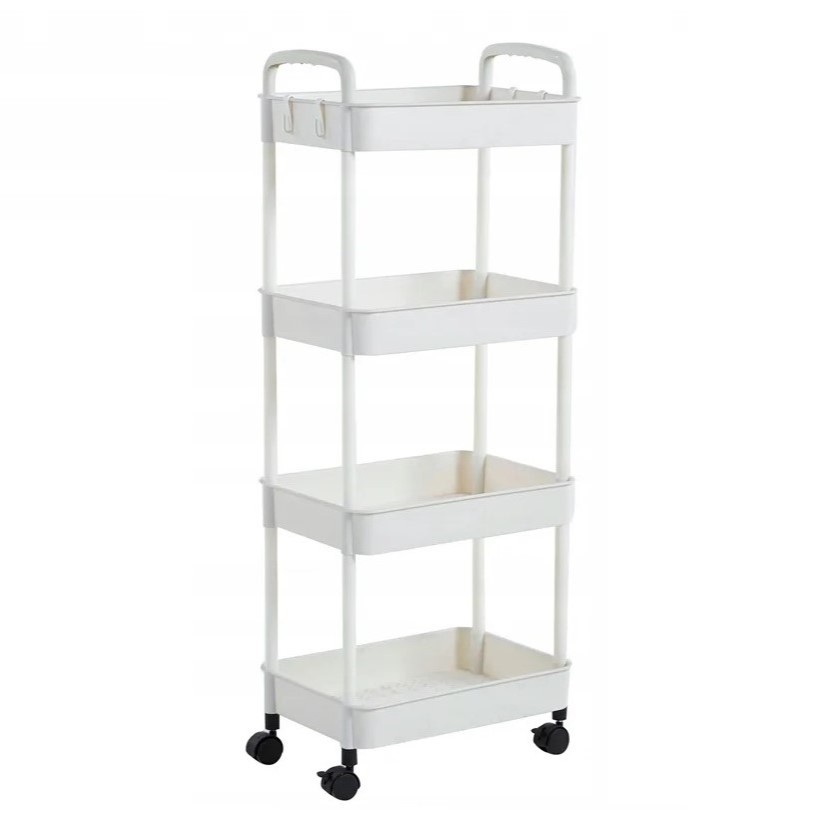 Raft bucatarie, dulap mobil pe roti, 4 niveluri, alb
