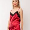 Salopeta Din Satin Elastic Nadia Cu Dantela - Rosu, Negru si Grena