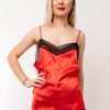 Salopeta Din Satin Elastic Nadia Cu Dantela – Rosu, Negru si Grena
